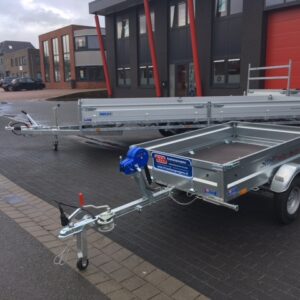 Opvouwbare aanhanger. Totaalgewicht 750 kg, laadvermogen 570 kg. Let op, verzenden gaat per pallet (€125,00), afhalen is uiteraard gratis.